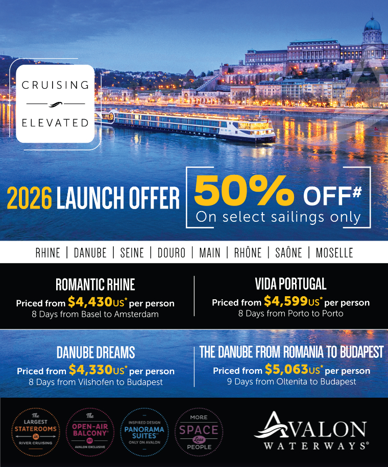 Avalon Waterways has announced their 2026 launch offer with 50% off on select Europe river cruise sailings. Book an Avalon Europe river cruise and enjoy the perfect blend of elegance and ease – where little touches are bold, gestures are grand and the views even grander. Avalon’s boutique-hotel-inspired Panorama Suites feature the industry’s only Open-Air Balconies with the widest-opening windows in cruising, plus decadent Comfort Collection beds that face the ever-changing scenery.
