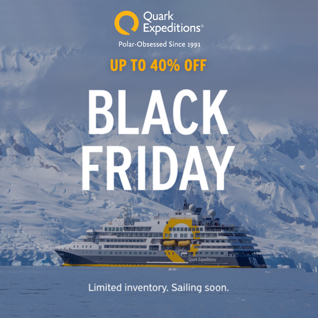 Explore the untamed beauty of this world’s most captivating regions with Quark Expeditions, and save up to 40% on select Antarctic 2025/2026 and Arctic 2026 voyages. In addition, past passengers will receive an extra $250 shipboard credit. The offer valid on select sailings and is subject to availability.