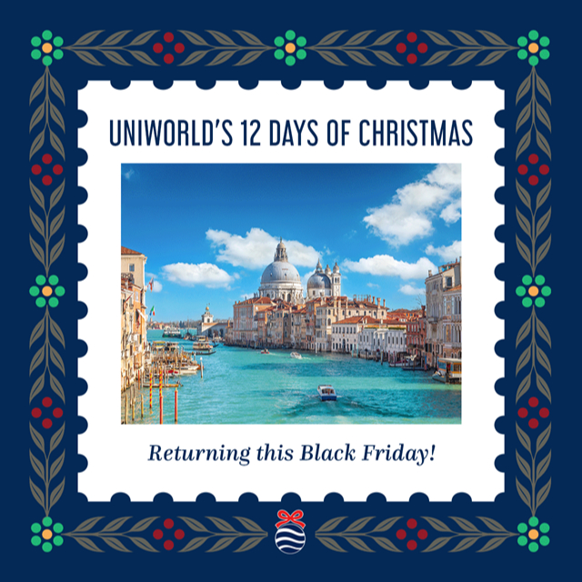 Uniworld has introduced a 12 Days of Christmas savings event with new offers released every day for 12 days. What does Uniworld have in store this year? Think free trip extensions, waived solo traveller supplements, and even savings of up to 50% on luxurious river cruises.